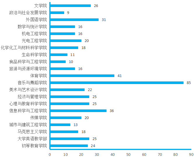 图4. 各院(部)3月18日线上授课教师数(人次)分布图