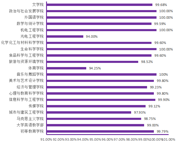 图6. 各院(部)3月12日线上学生上课率分布图