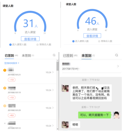 学生进入课堂就自动签到,了解上课出勤率,及时了解未到课学生情况。