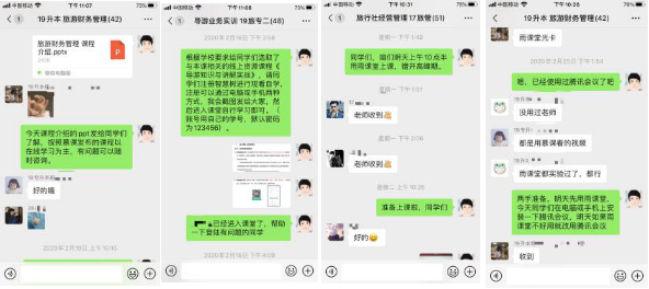本学期旅游与资源环境学院孙倩蓉老师承担了4门课程,分别是2017级国际旅游专业的《旅行社经营管理》、2019级旅游管理升本的《旅游财务管理》、2017级酒店管理的《宴会组织与设计》、2019级旅游管理专科2班的《导游业务实训》。因受新冠肺炎疫情防控的影响,学校延迟开学,本着“推迟开学不停学”的要求,学校及时进行了在线教学的相关的培训,通过培训学习,以及课程有关线上资源,她最终决定使用雨课堂为主要线上教学工具,配合微信群、腾讯会议等网络媒体,开展本学期的线上教学工作。