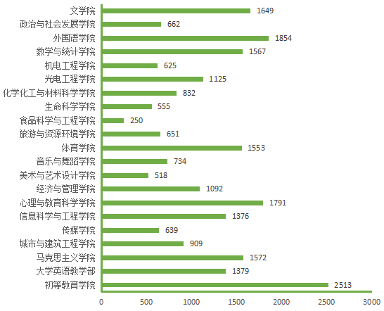 图5. 各院(部)3月4日线上授课学生数(人次)分布图