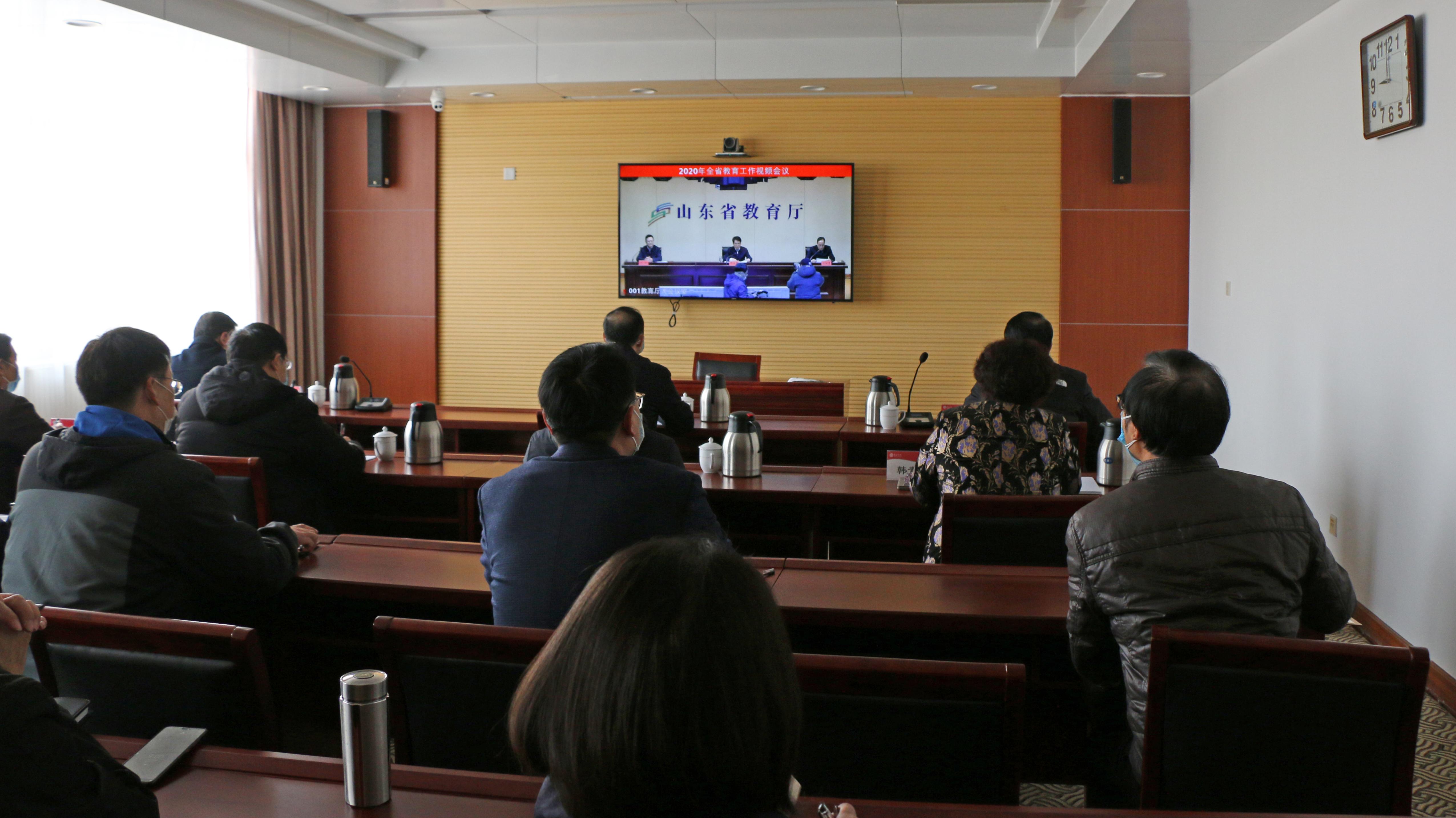 3月3日上午,全省教育系统工作视频会议在济南召开。省委教育工委常务副书记,省教育厅党组书记、厅长邓云锋出席并作教育工作报告,省委教育工委副书记,省教育厅党组副书记、副厅长冯继康主持会议。我校在综合楼七楼视频会议室设立分会场,校领导曹胜强、李东、曾宪明、明清河、李目海、韩素玲、李丽清参加视频会议。