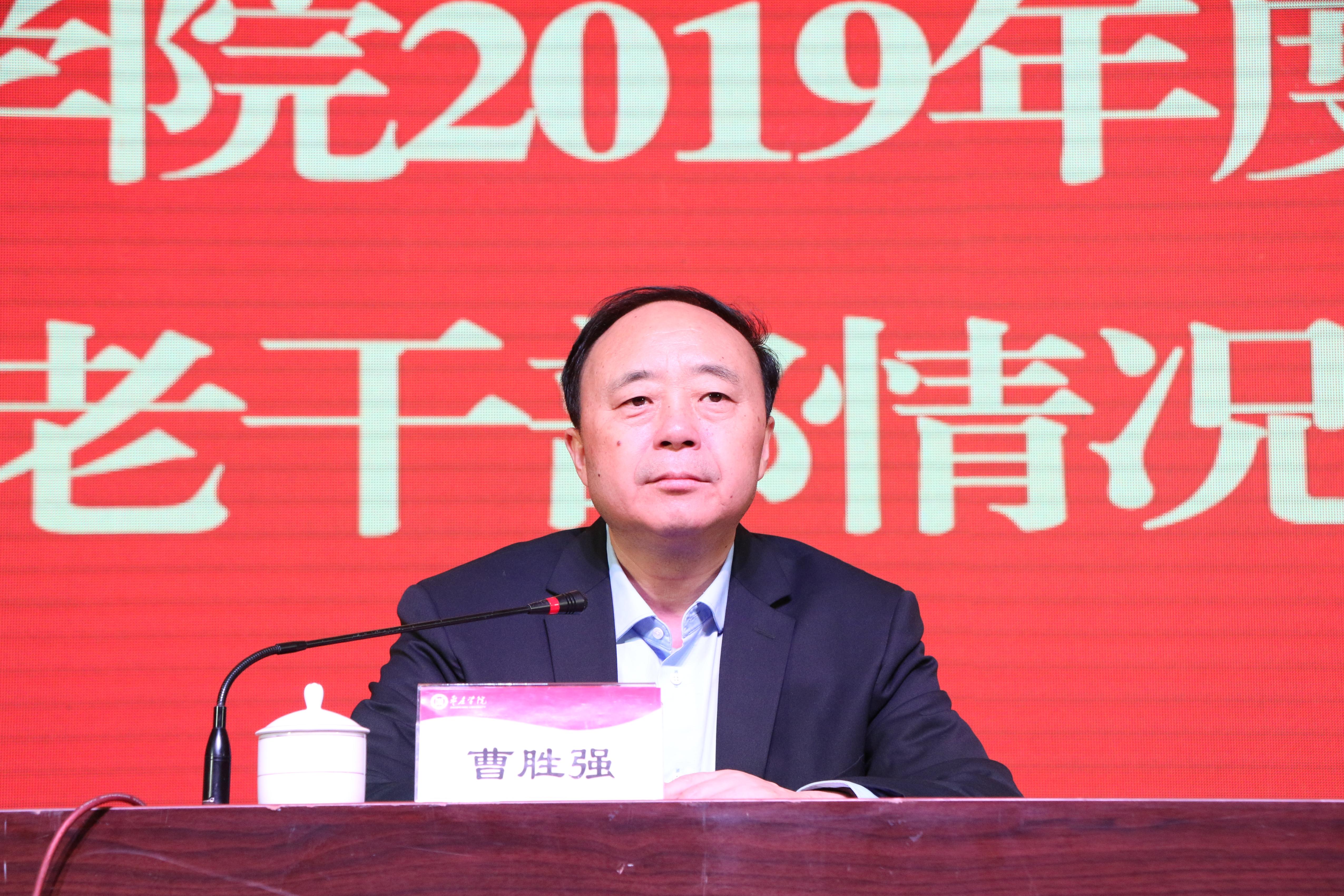 1月8日下午,我校2019年度工作总结暨老干部情况通报会在音乐楼报告厅召开,校领导曹胜强、李东、曾宪明、明清河、李目海、韩素玲、李丽清出席会议,离退休老干部代表、民主党派代表及全校副处级以上干部参加了会议。校党委书记曹胜强主持会议并讲话。
