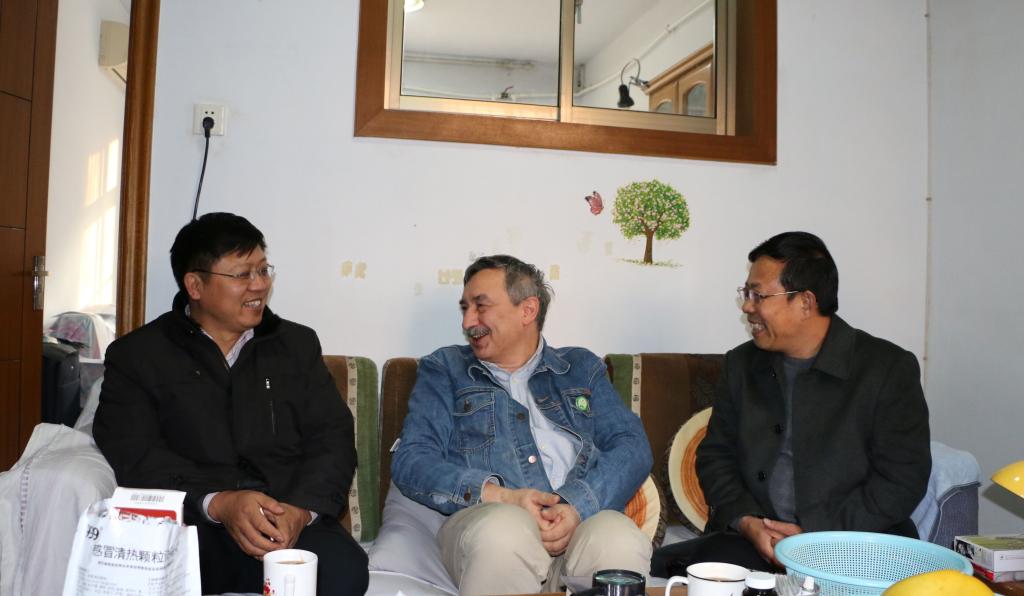 1月18日下午,副校长明清河、李目海在办公室、国际合作与交流处、国有资产管理处、后勤集团、校园建设与管理处等部门相关同志陪同下,走访慰问我校在校外国专家。