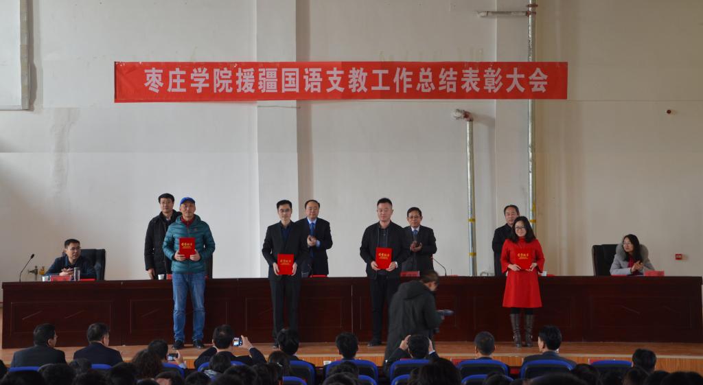 曹胜强作总结讲话。他指出,4名带队教师和202名支教学生,以心系国家、服务人民的理想,以奋发有为的精神面貌和扎实有力的工作态度,取得了斐然的成绩,有利地助推了当地国语教学改革,受到了普遍赞誉和一致好评。202名支教学生分布在疏勒县16所学校,其中县城内8所,巴仁乡学校8所,涵盖幼儿园、小学、初中、高中各年级各学科,共教授264个班级,所教学生数多达12600余人,周课时共计2875课时,30名学生兼任班主任,指导学生社团8个。同学们在上课之外,积极参与班级管理,组建校内合唱团、篮球队等兴趣社团,参与校内图书档案整理、墙绘宣传制作等工作。支教团成员以实际行动实现了“三个践行”和“三个增强”:践行了社会主义核心价值观,践行了“兼爱 尚贤 博物 戴行”的校训,践行了人民教师的园丁精神,增强了政治素质,增强了思想觉悟,增强了职业本领,生动诠释了我校办学理念和人才培养质量,充分展现了香港全年最全免费资料大全学子的风采,提高了香港全年最全免费资料大全的美誉度,人民日报、山东电视台、疏勒电视台记者都对支教团工作进行了专访。4名带队教师不辞辛劳,敢于担当,及时解决学生在支教过程中遇到的各种困难和问题。在有效完成对支教学生管理工作的同时,不断创新工作方法,加强支教团的内涵建设,丰富支教业余生活,形成了一套切实可行的支教管理模式,让202名支教学生在短时间内,迅速成长为业务能力强,深受领导喜爱、学生欢迎的优秀人民教师。