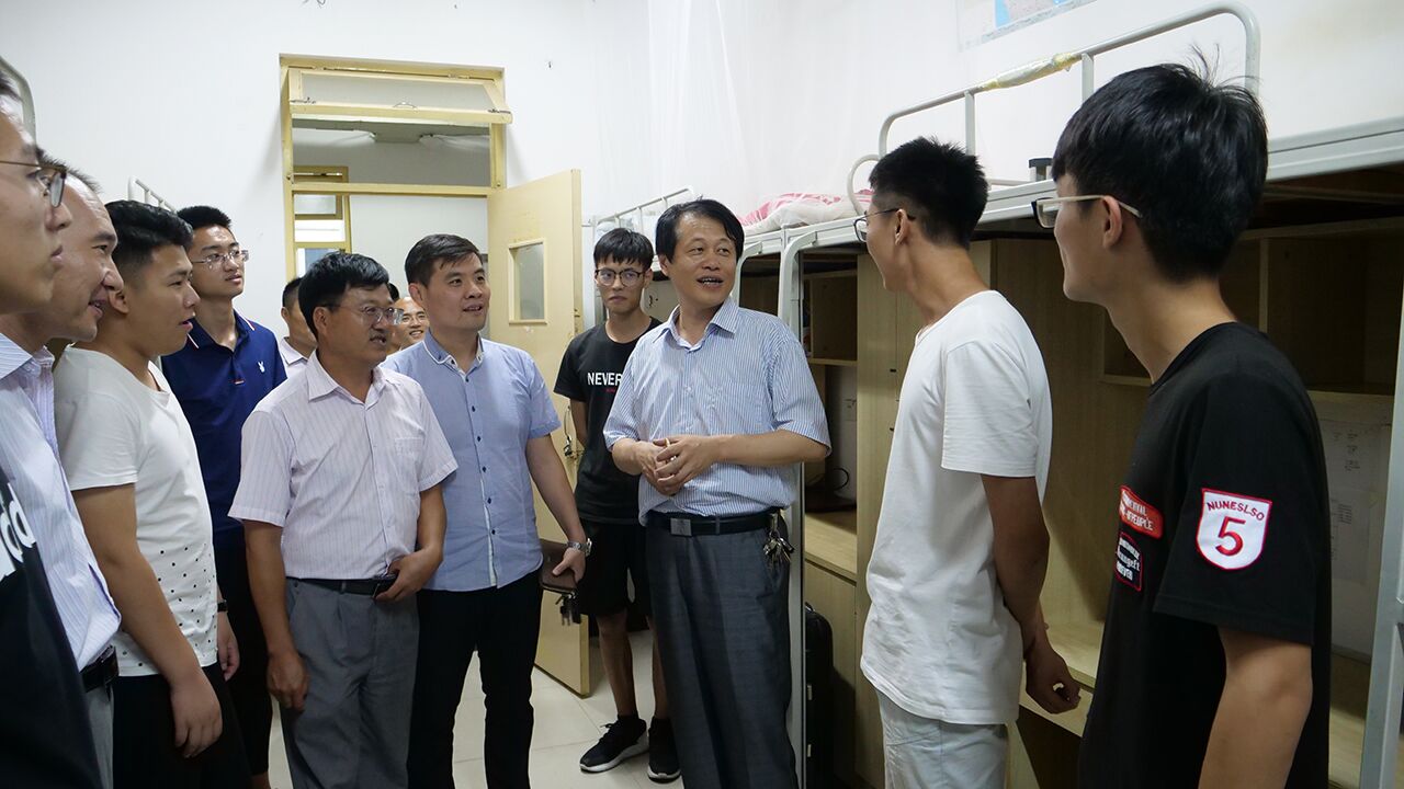6月29日晚,学校领导李东、曾宪明带领校办公室、宣传部、学生处、团委、教务处、后勤管理处、保卫处等部门有关人员分组深入2018届毕业生宿舍,看望慰问即将离校的毕业生们,为即将迈向新征程的同学们送去亲切的问候和衷心的祝福。各学院的党政领导、团总支书记、辅导员班主任老师陪同学校领导一同看望。