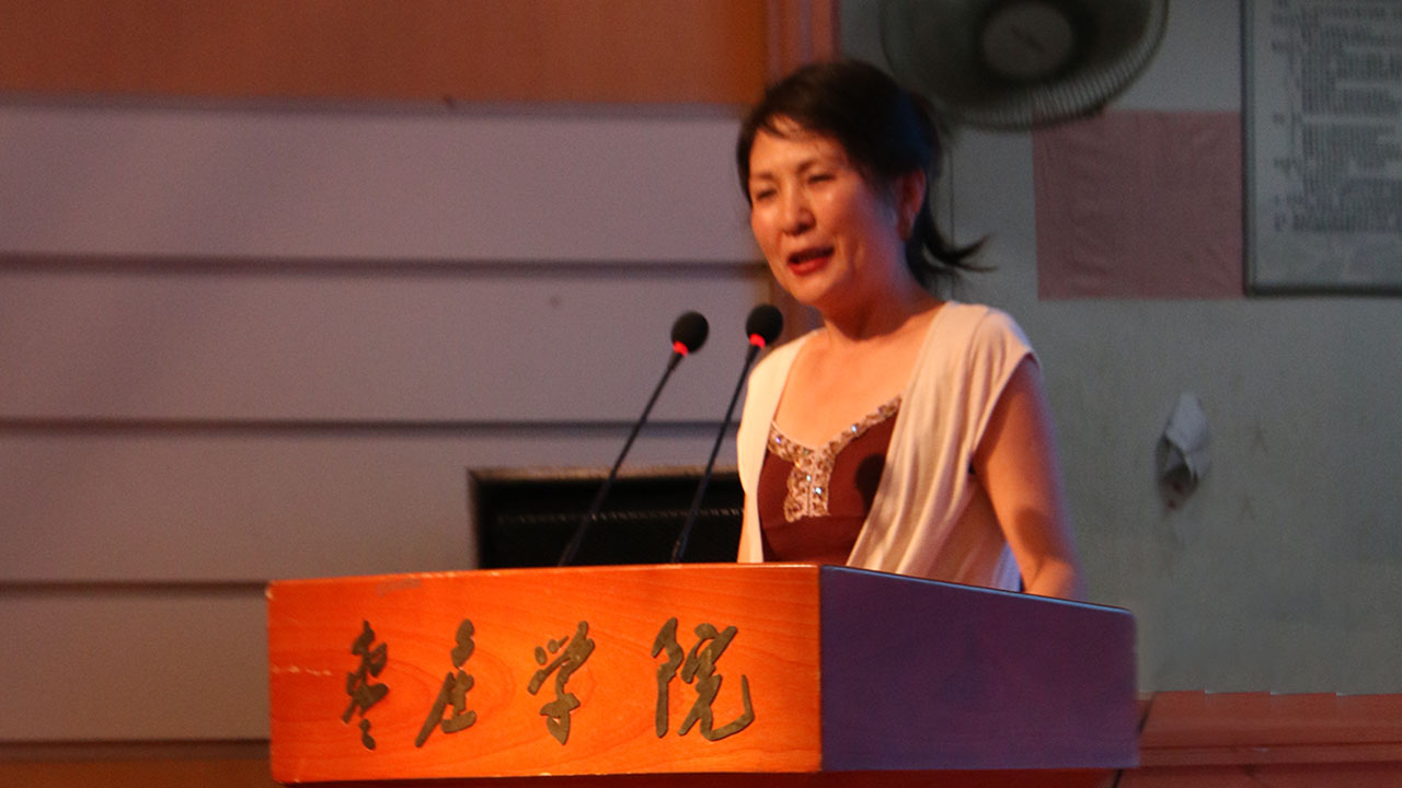 中欧微电影展组委会执行主席纳吉·麟女士介绍影展背景。她说,在欧盟驻华代表团和中国宋庆龄基金会共同推进下,这一项目得以实现,共有二十一个成员国提交了参展作品。我校是此次国内巡展的首站,她代表组委会向学校的大力支持表示感谢。