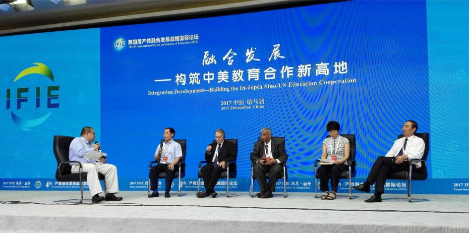 近日,“跨界·融合”——第四届产教融合发展战略国际论坛在驻马店市嵖岈山国际会议中心召开,论坛由教育部、河南省政府支持,教育部学校规划建设发展中心、应用技术大学(学院)联盟主办,驻马店市人民政府、黄淮学院承办。教育部副部长孙尧、河南省副省长徐济超等领导出席开幕式。我校李东校长、李进京副校长作为特邀嘉宾参加了主论坛和2场分论坛。