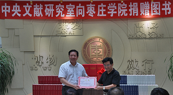 9月20日下午,中央文献研究室向我校捐赠图书仪式在图书馆举行。中央文献研究室副主任、中国毛泽东诗词研究会会长陈晋,中央文献研究室第一编研部主任杨明伟,中央文献研究室科研管理部主任郑昭红,校领导胡小林、李目海以及中央文献研究室的同志、我校图书馆及相关部门负责人和媒体的朋友参加了捐赠仪式。
