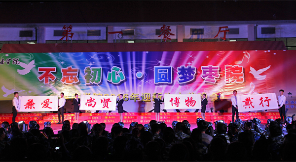 此次晚会彰显了我校浓厚的文化底蕴,展示了我校学子积极向上的精神风貌和多才多艺的艺术修养,作为新生入学适应教育的载体,积极助力2016级新生的入学适应、自我教育和未来规划。不忘初心,圆梦枣院!