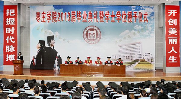 综合楼学术报告厅内,乐曲悠扬,师生们欢聚一堂,与2013届毕业生共同经历这一人生盛典。毕业生同学们个个意气风发:端正的学位帽,庄重的学位服,映衬着一张张青春洋溢的笑脸,整个大厅弥漫着收获的喜悦。