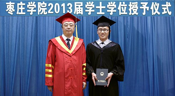 在欢快的《迎宾曲》中,校长曹胜强教授为毕业生代表授学士学位并合影留念。