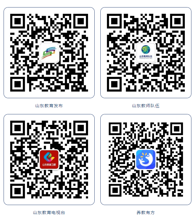 (二)网络端:通过扫描二维码进入“山东教育发布”“山东教师队伍”“山东教育电视台”微信公众号、“养教有方”APP,在“直播点播”中打开教师“开学第一课”观看。