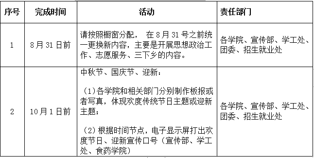 为欢庆即将到来的教师节、中秋节、国庆节, 做好我校迎新工作,同时迎接枣庄市创建全国文明城市工作检查,现将近期文化建设相关事宜通知如下,请按计划落实。
