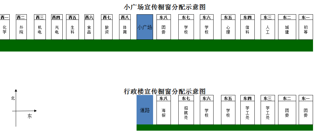 为进一步明确校内宣传橱窗使用归属,做好相关管理工作,现将市中校区小广场、行政办公楼前的玻璃橱窗重新划分如下,请按照划分情况做好日常使用管理。如遇重大节日或重要工作需统一调配使用将另行通知。