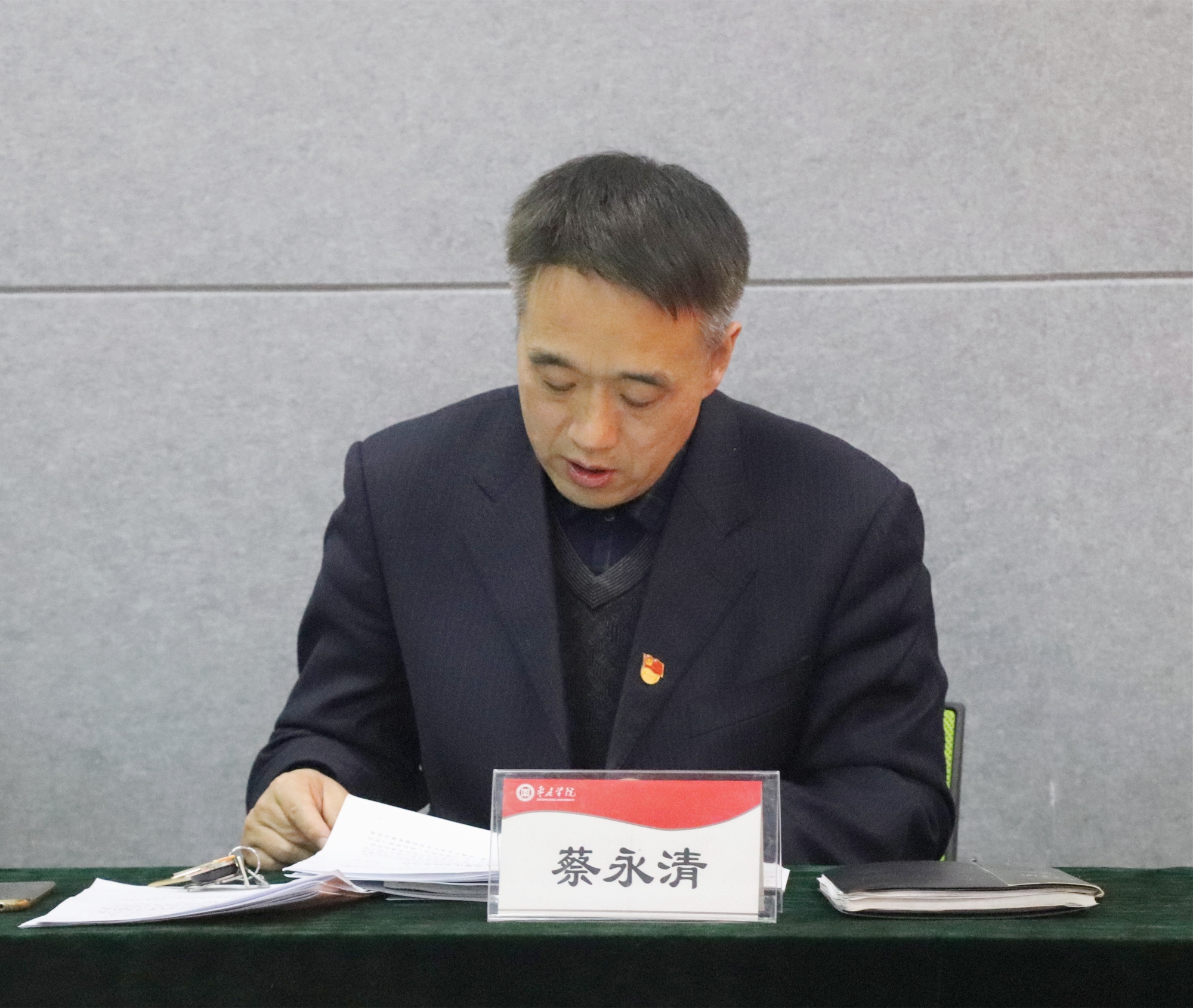 “社会主义是干出来的,新时代是奋斗出来的”、“光荣属于劳动者,幸福属于劳动者。”蔡永清借用习近平总书记在全国劳模和先进工作者表彰大会上讲话作为结束语,号召全体师生,把思想统一到党代会精神上来,明确责任,细化措施,以抓铁有痕、踏石留印的实干作风,凝聚智慧和力量,实现学院又好又快发展。