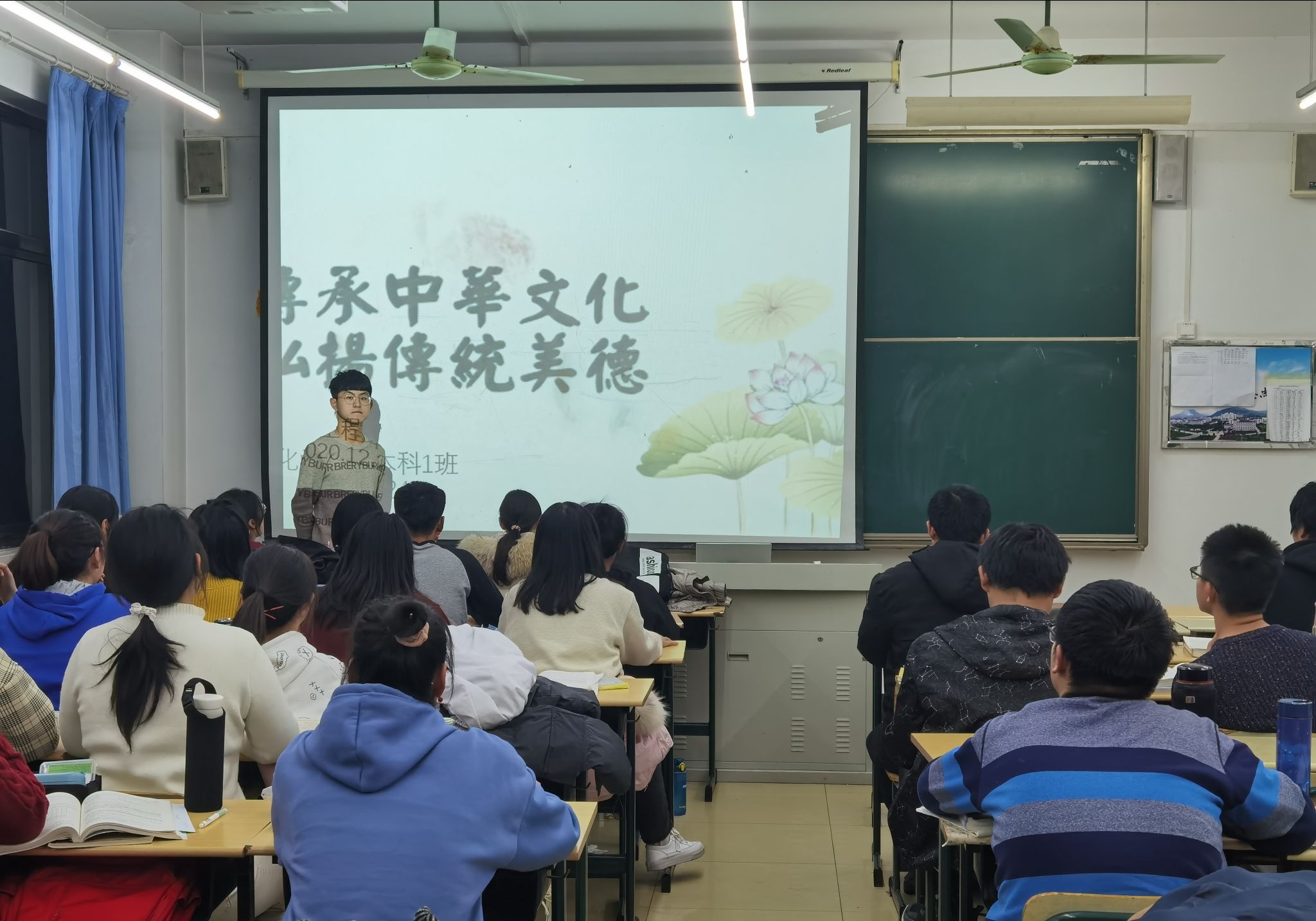 学习中,各班通过多媒体、图片展示、讲授传统文化故事等方式进行了集中学习;在小组讨论的环节中,大家都表达了对学习中国传统文化的心得体会。同学们表示,要在讲仁爱、守诚信、崇正义、尚和合、求大同上下功夫;要在肩负起传承发展中华优秀传统文化的历史责任上下功夫;要在天下兴亡、匹夫有责的担当意识,精忠报国、振兴中华的爱国情怀,崇德向善、见贤思齐的社会风尚,孝悌忠信、礼义廉耻的荣辱观念上下功夫。新时代大学生要继承和发扬中华优秀传统文化,要有“周虽旧邦,其命惟新”的认知,要有不忘本来、吸收外来、面向未来,不断增强中华优秀传统文化的生命力和影响力的魄力。