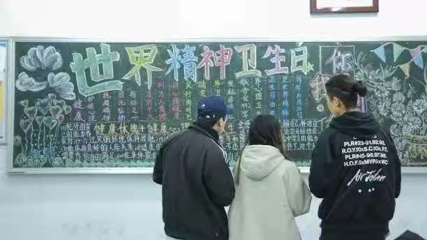 在“活力校园、炫彩青春”心理沙龙活动中,精心设计了心有灵犀、萌新对对碰、天女散花、摸石过河等六个内容丰富、参与性强的减压游戏。在世界精神卫生日板报绘画评比活动中,学生利用自身专业优势,通过对板报的字面分配、排版布局,营造了学习心理健康和精神卫生知识的浓厚氛围,充分展现了同学们的想象力和团结合作的精神,提升了同学们的精神卫生和心理健康意识,同时号召全体同学积极参与精神卫生工作,共同承担防治责任和义务。