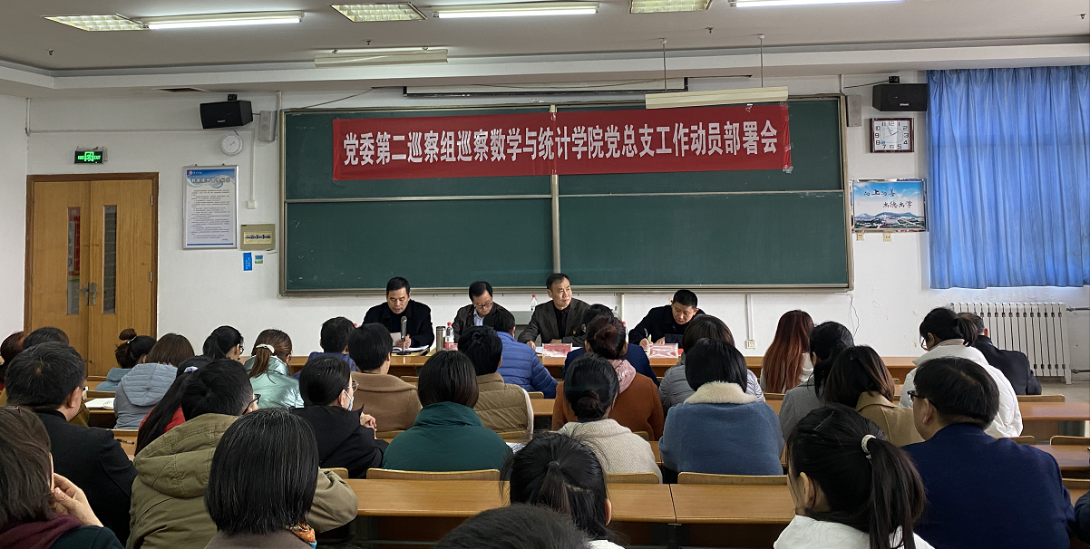 根据学校党委统一部署,11月25日下午,党委第二巡察组巡察数学与统计学院工作动员会在综合楼1510室召开。党委巡察工作领导小组成员、党委委员、宣传部部长张昌林,党委第二巡察组全体成员,数学与统计学院领导班子成员、全体教职工、学生党员共60余人参加会议。