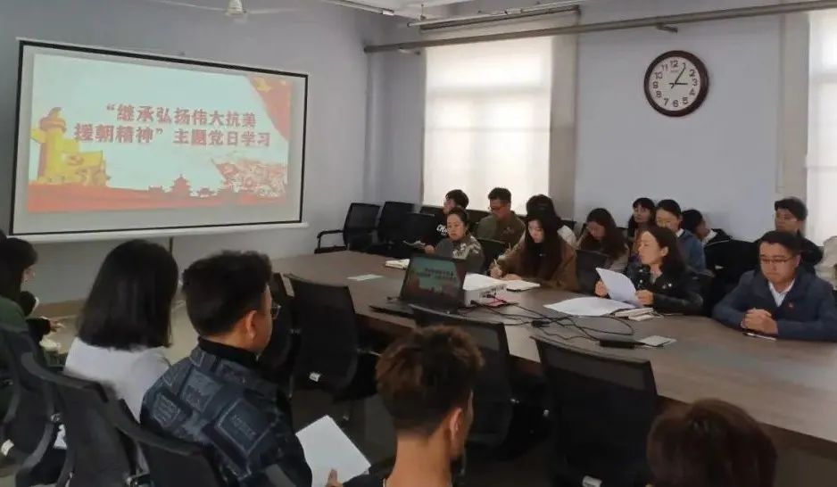 10月28日下午,美术与艺术设计学院学生支部于美术楼党员活动室开展“弘扬伟大抗美援朝精神”主题党日学习。学院党总支副书记、学生支部书记邢哲主持此次学习。