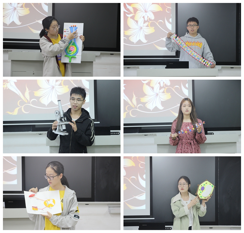 参赛选手们逐一展示制作精美的教具模型,并对其在教学设计中的应用进行详细讲解。制作教具的材料都是常见的太空泥、纸版、针线、铁丝等环保、易得的材料,选手们运用奇思妙想,创新创造地将它们变成了一个个既精美又实用的简易教具。参赛作品既有自制的精细组装式显微镜、栩栩如生的草履虫,还有植物的光合作用、心脏的结构以及DNA双螺旋结构动态模型等,每件作品都凝聚着选手们的聪明才智。生动形象的教具展示、精彩纷呈的细致讲解充分体现了参赛者独具匠心的创造力和想象力。
