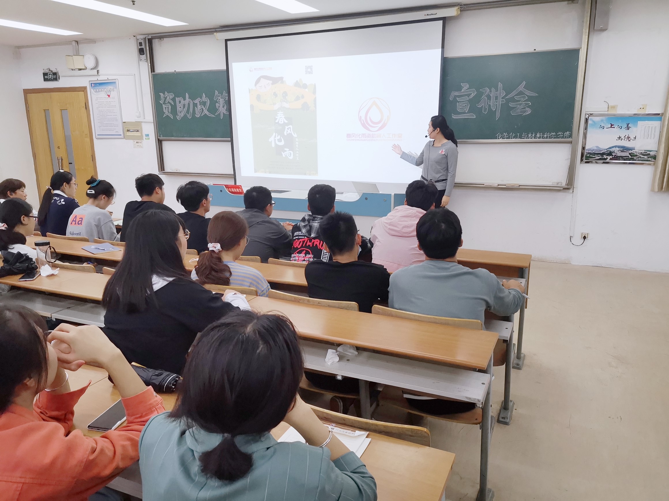 为进一步贯彻落实高校资助政策,做好精准资助和资助育人工作,帮助贫困学子全面了解资助政策,春风化雨资助育人工作室于10月2日晚在综合楼1213为化学化工与材料科学学院学子开展资助政策宣讲会,辅导员钱莹主讲。