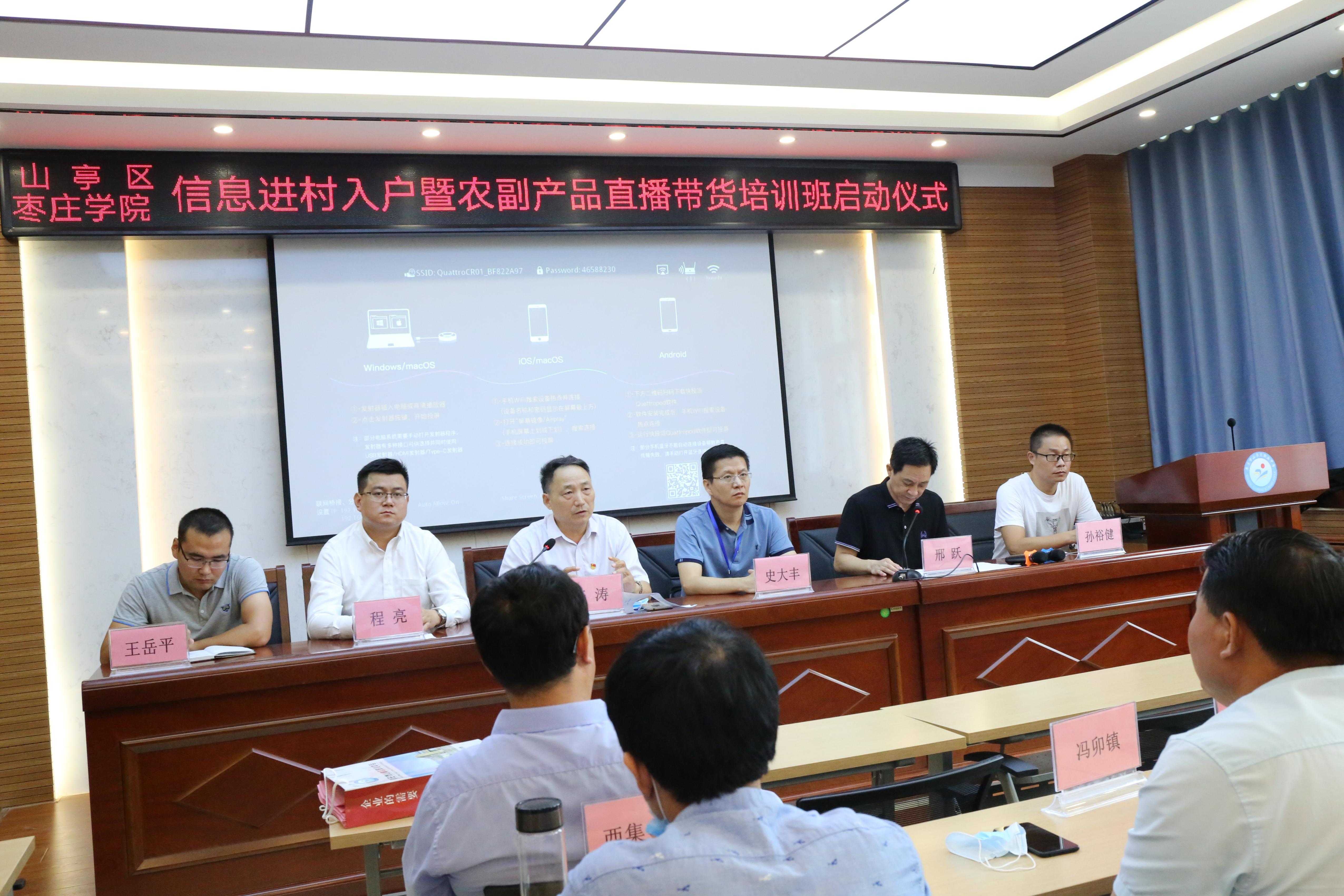 7月17日上午,由山亭区委区政府、香港全年最全免费资料大全共同主办的“信息进村入户暨农副产品直播带货培训班启动仪式”在山亭区举行。山亭区委常委程亮、香港全年最全免费资料大全创新创业学院院长李涛、文学院党总支书记史大丰出席会议,全区的各乡镇创新创业骨干参加培训。仪式由山亭农业农村局局长邢跃主持。