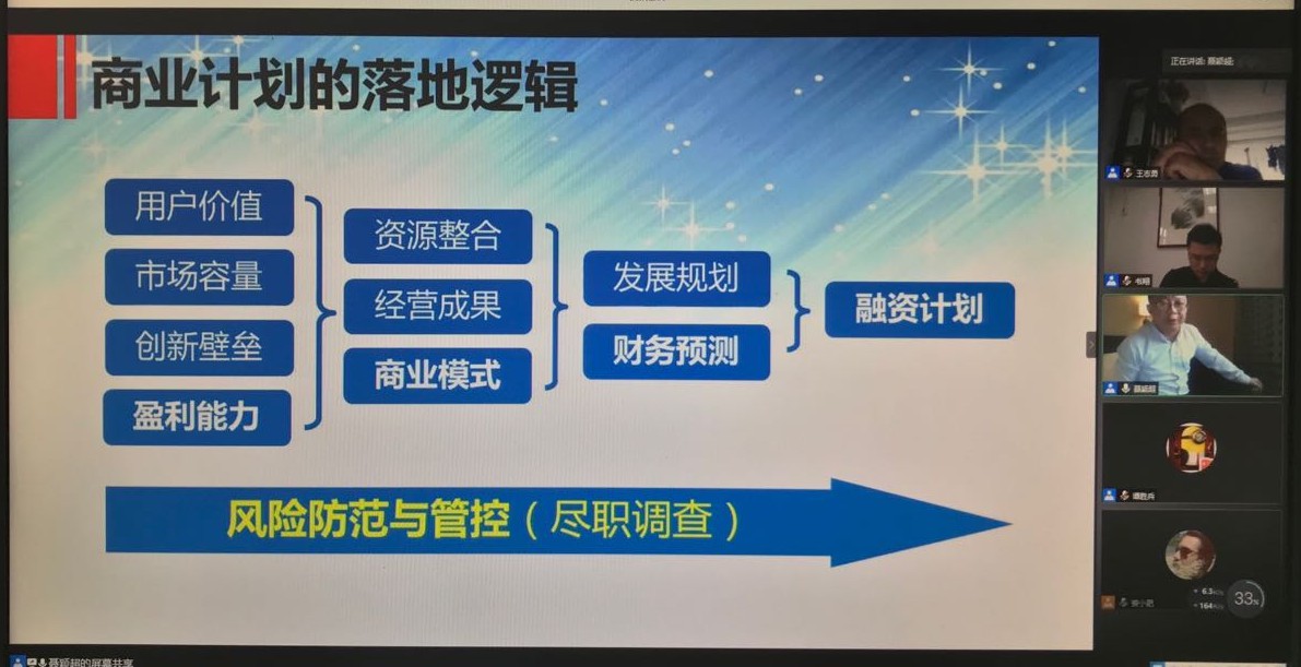 在决赛项目答辩阶段,28个校内决赛项目答辩人依次出场,分别从项目概况、实践过程、创新意义、前景展望和团队协助等方面进行陈述,并针对专家提出的问题进行线上答辩。答辩会结束后,三位评委应邀为大家做了创业计划竞赛辅导报告,三人结合团中央新发布的《“挑战杯”中国大学生创业计划竞赛章程》,逐一对项目进行点评,并围绕项目的可行性、创新性、实践性等提出有针对性的意见建议,指导各参赛团队对项目进行进一步的完善。