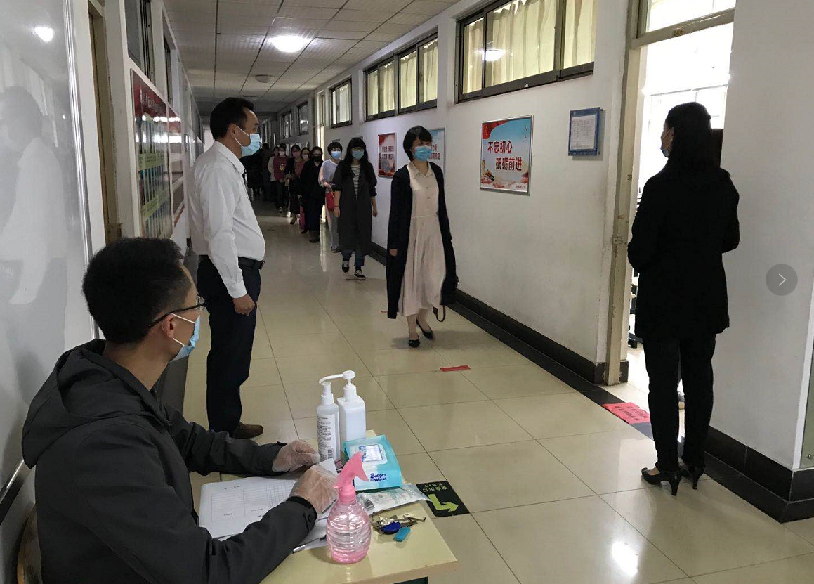本次实战演练,是针对学生返校后在校园内可能出现的疫情事件,进行应急处置预案的一次“大练兵”。演练开始前,全体教师一起收看学校演练视频,共同学习了学校防控疫情应急处置相关知识以及流程。启动仪式后,演练开始。演练共分为两部分,一部分模拟学生上课过程中,一部分模拟在宿舍内时,学生出现发热或身体不适等症状时,全过程应急处置流程及应对策略,包括应急预案启动、现场应急隔离、身体不适学生转运、密切接触者心理疏导,现场环境消杀、管理等环节。