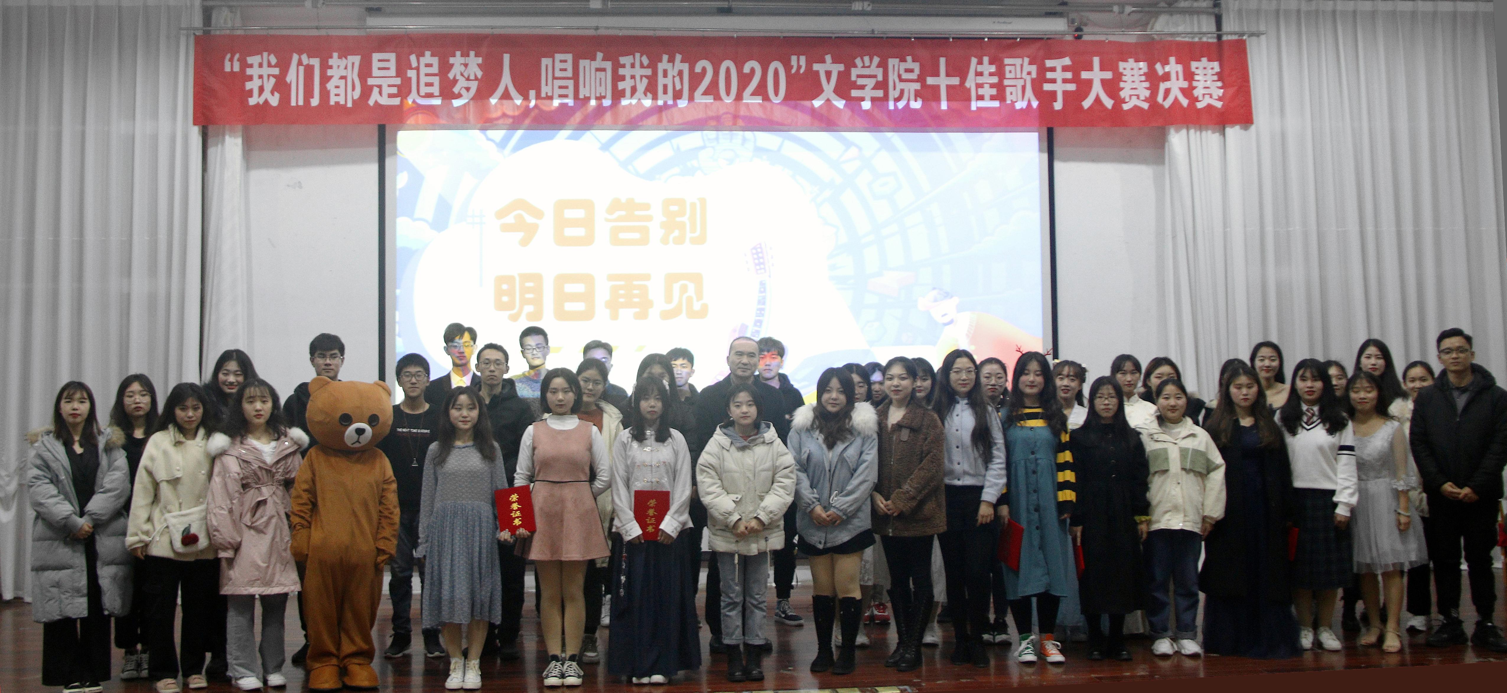 12月19日晚,由文学院学生工作办公室、学生会主办的“我们都是追梦人,唱响我的2020”十佳歌手大赛决赛在文科楼报告厅举行,党总支副书记王昌龙,学生会、自律委员会主席团及200余名学生观看了比赛。