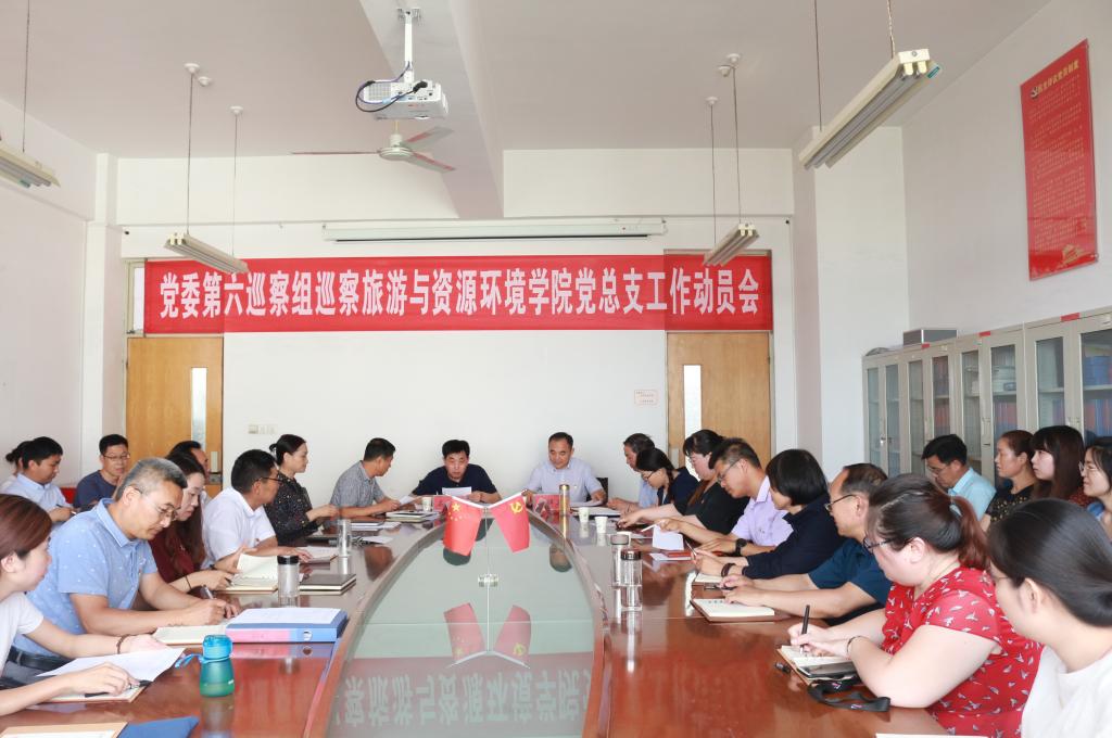 6月12日下午,党委第六巡察组在理工楼2514室召开了巡察旅游与资源环境学院党总支工作动员会。党委巡察工作领导小组副组长、党委巡察办公室主任石少华同志,党委第六巡察组组长孟祥卫同志,党委第六巡察组成员、学院党政领导班子成员及全体教职工、学生党员参加会议,会议由院党总支书记陆德国同志主持。