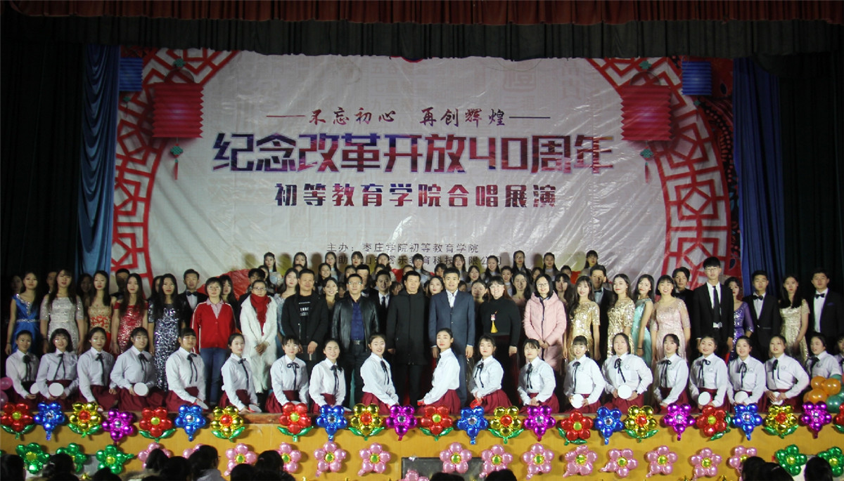 12月28日下午,初等教育学院在体育馆举办“不忘初心,再创辉煌——纪念改革开放40周年合唱展演”,初等教育学院党政班子成员和全体教师、学校各二级学院学生会主席、部分学生共同观看了表演。