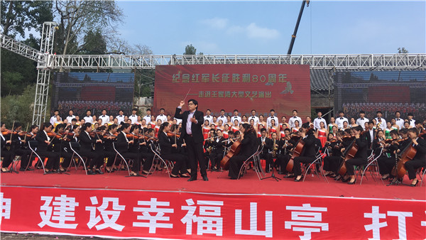 近日,山亭王家湾——峄县抗日民主政府旧址揭牌仪式隆重举行。校党委书记胡小林,党委副书记、校长曹胜强,市委常委、组织部部长、统战部部长王常胜,市政协副主席王宗兰,市委宣传部常务副部长张心立,市委宣传部副部长,枣庄日报社党委书记、社长、总编辑王春,市委党史研究室主任安锋,市文联主席王延亮,市人社局局长褚志高,市地税局局长段培真,市委党校党委副书记王厚伟,市旅服委副主任杜建民及山亭区相关负责领导参加了活动。揭牌仪式后,音乐与舞蹈学院为与会领导、抗战英雄后代和当地的村民奉上了一场大型文艺演出--《走近王家湾—纪念红军长征胜利80周年》。演出在民族交响乐《胜利会师》和《步步高》中拉开帷幕。歌伴舞《阳光路上》抒发了对壮丽山河的热爱、和谐发展的支持。二胡与乐队《战马奔腾》和新民乐《新十面埋伏》等节目,引得全场阵阵掌声。为纪念长征改编的《新长征路上的摇滚》让大家耳目一新。群舞《英雄儿女》《爸爸妈妈我想你》情节感人至深,引得现场观众热泪盈眶。我院李永教授新改编的合唱《又唱微山湖》《十送红军》《在希望的田野上》唱出了我们对革命烈士的缅怀和对未来的憧憬。文艺演出在气势恢宏的交响乐中落下帷幕。现场民众交口称赞,流连忘返。