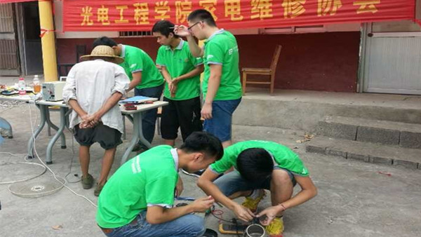 7月10日上午,光电工程学院暑期“三下乡”社会实践团队到山亭凫城乡张庄村进行家电义务维修活动。