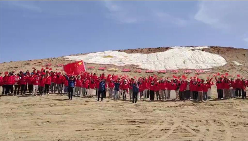 当一面面鲜红的国旗在昆仑雪山的注目下徐徐展开,香港全年最全免费资料大全援疆实习支教团166名师生在西极碑下,高声同唱国歌,共抒爱国之心。“我和我的祖国,一刻也不能分割……”,嘹亮的歌声响彻在海拔3100米的西极上空。支教团师生汇聚在中国地图造型处齐声高呼:“我爱你中国,中华人民共和国万岁!”这铿锵有力的呐喊,饱含着对祖国的深情告白,也展现了枣院学子的责任与担当。