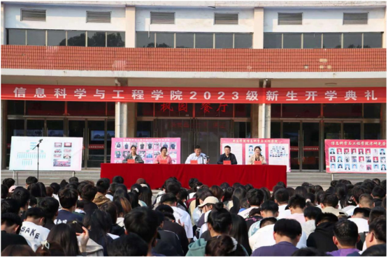 10月11日下午,信息科学与工程学院2023级新生开学典礼在五四广场举行。信息科学与工程学院党政领导、新生辅导员、班主任代表及2023级全体新生参加了典礼。