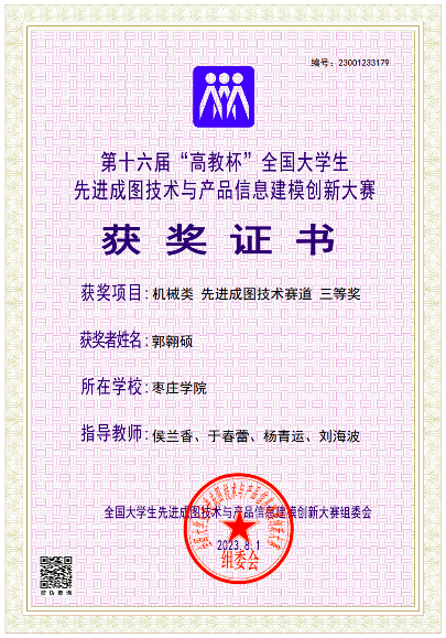 近日,第十六届全国大学生先进成图技术与产品信息建模创新大赛在重庆交通大学科学城赛区顺利落下帷幕。经过激烈角逐,我校机电工程学院代表队喜获机械类团体三等奖,郭翱硕同学在本次比赛中获得机械类个人全能三等奖。