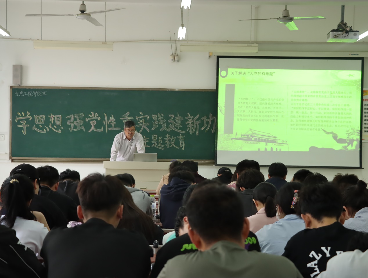 按照校党委关于学习贯彻习近平新时代中国特色社会主义思想主题教育的部署安排,5月24日下午,光电工程学院党总支书记马伟在墨子楼S3201讲授专题党课,学院全体党员参加。