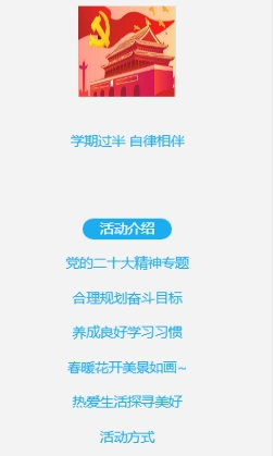 为深入学习贯彻习近平新时代中国特色社会主义思想,激励同学们坚定理想信念,锚定目标,奋发努力,5月10日至21日,心理与教育科学学院易班工作站组织开展“学期过半,自律相伴”轻应用活动,学院全体学生参加。