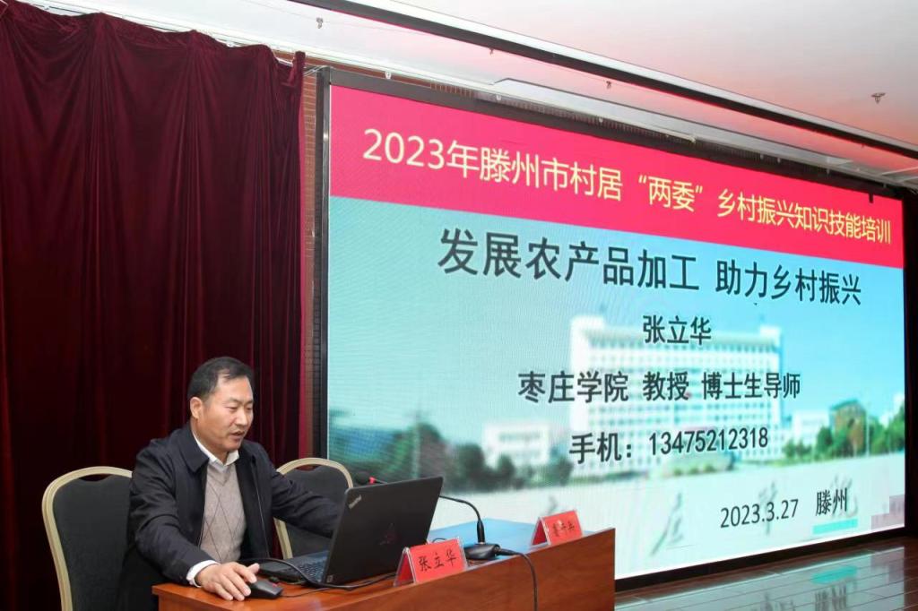 3月27日,食品科学与制药工程学院院长张立华教授受邀为滕州市村居“两委”乡村振兴知识技能培训班学员作“发展农产品加工 助力乡村振兴”专题授课。滕州全市村居两委班子成员5000余人参加培训,活动采取线上线下相结合的方式进行。