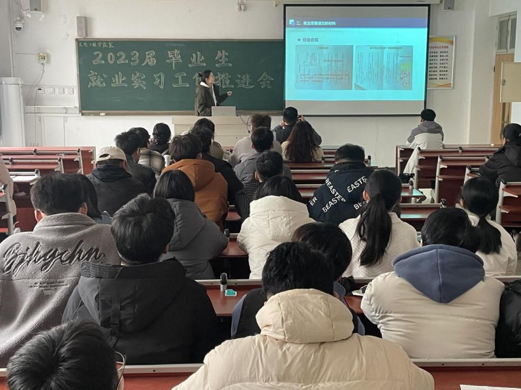 2月23日下午,光电工程学院于墨子楼S3201、S3301召开2023届毕业生就业实习工作推进会,会议邀请青岛百杉、北京中软和中科瑞特等企业进行宣讲,并安排部署就业实习各项工作。全体本科毕业生共计250余人参加会议。