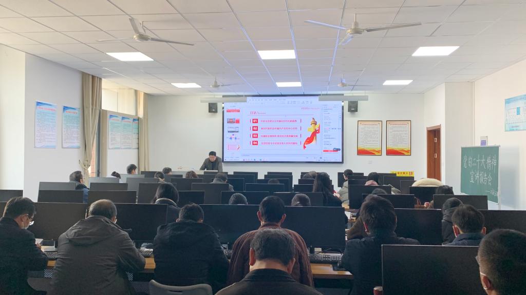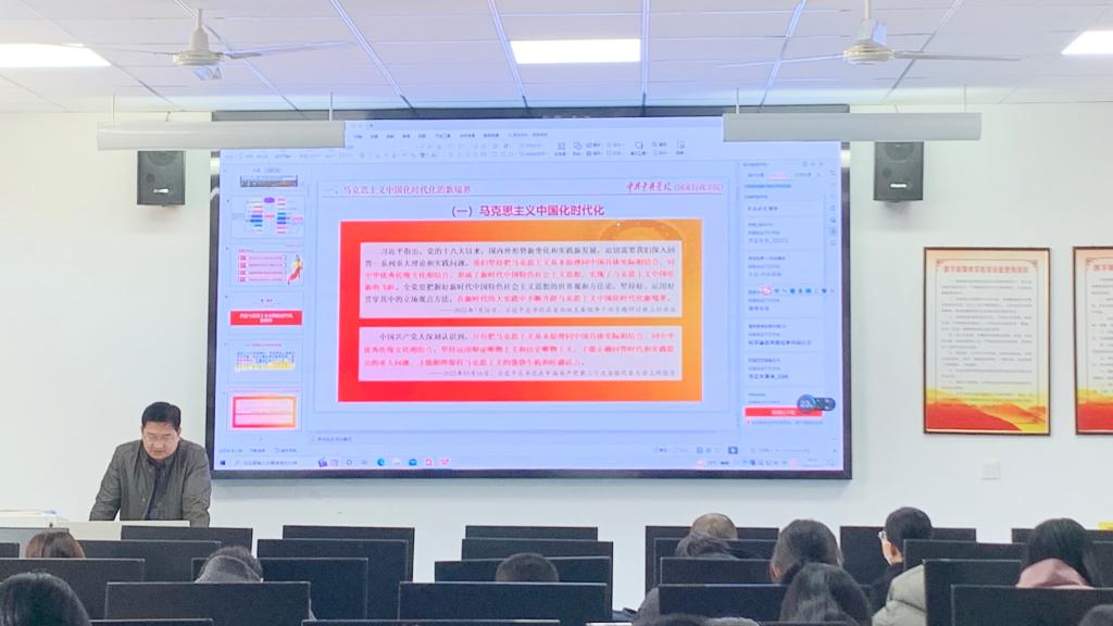 12月7日下午,文学院院长张爱民在薛城校区豁然楼A417以《中国式现代化推进中华民族伟大复兴——关于党的二十大精神的认识和体会》为题作党的二十大精神宣讲,学院全体教职工参加。