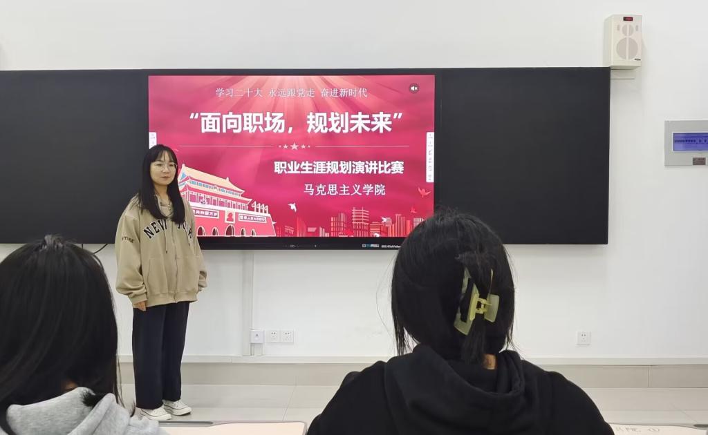 11月24日,学院开展“面向职场,规划未来”演讲活动,旨在让同学们更清楚地了解适合自身的职业方向,设立职业定位。参加活动的同学语言铿锵有力,逻辑严密,对就业创业等问题阐发了深刻的见解,展现了同学们对于自己个性特质的了解和对职业生涯的科学规划,体现了同学们敢于抒发理想抱负的果敢精神和积极面对人生的乐观态度。