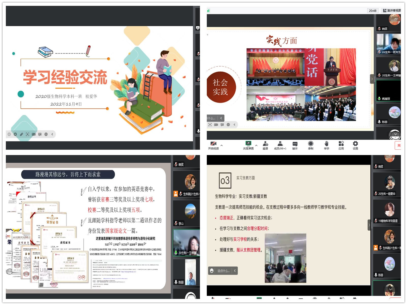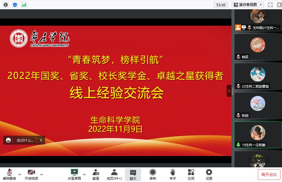 生命科学学院举行“青春筑梦、榜样引航”奖学金获奖学生线上经验交流会