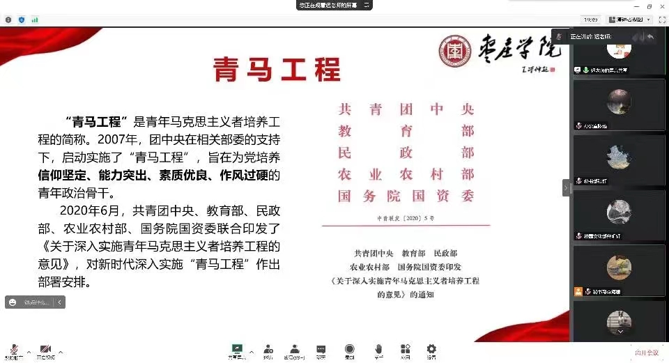 开班仪式上,学院相关负责人结合《关于深入实施青年马克思主义者培养工程的意见》,详细的阐述了深入实施“青马工程”的重要意义和总体要求,介绍了学院“青马工程”近几年的开展情况,并对本次的培训目标、开展形式、课程计划等方面介绍了整体安排。部分学员进行了交流发言。