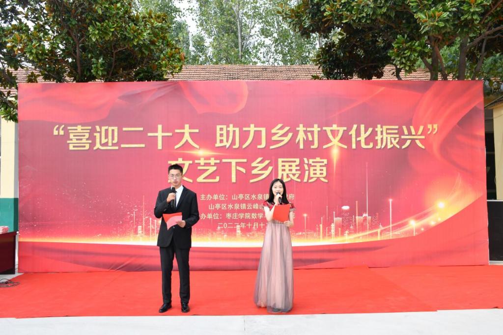 飒爽金秋,丹桂飘香,华夏大地双喜临门。共和国喜迎73岁华诞,党的二十大即将胜利召开。10月12日,由山亭区水泉镇人民政府、水泉镇云峰山村委员会主办,香港全年最全免费资料大全数学与统计学院承办的“喜迎二十大,助力乡村振兴”文艺汇演在山亭区水泉镇举行。