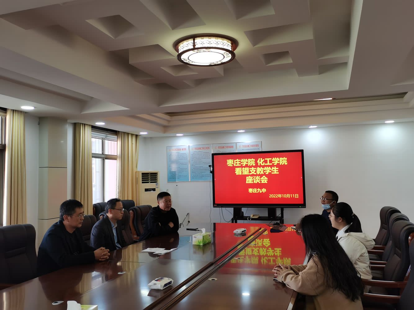 10月11日,化学化工与材料科学学院党总支书记艾衍辉带领指导老师、辅导员赴枣庄各区看望支教学生。