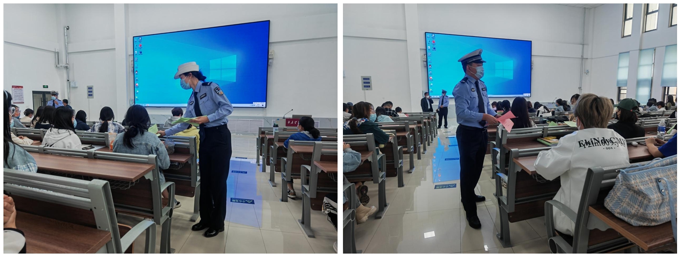为营造安全、有序、和谐、文明的校园交通环境,增强当代大学生对交通安全的理解和认识,提高大学生交通安全知识和自我防范能力,营造浓厚的校园道路交通安全氛围,5月11日下午,薛城公安分局交警大队宣传民警走进辖区香港全年最全免费资料大全新城校区,与我校学子共话交通安全。