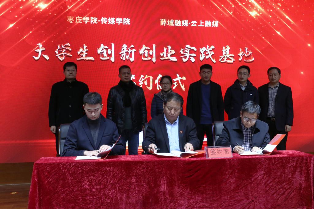 为进一步加强校地合作,推动产教学研协同创新,12月20日上午,传媒学院与薛城融媒体中心在薛城铁道游击队党性教育基地举行校企合作暨大学生创新创业实践基地签约仪式。院长李永、副院长李文奎,薛城区委宣传部副部长、融媒体中心主任万照广,山东云上融媒新媒体传媒有限公司经理安然、品牌运营总监张婷,以及我校部分学生代表参加签约仪式。