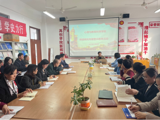 为进一步加强我院师德师风建设,12月8日,心理与教育科学学院开展师德师风专题教育活动,学院全体教职工参加活动。
